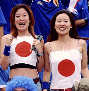 圖:日本女球迷身著性感裝為日本隊(duì)加油 2002年06月04日 17:37 ![]() 觀看日本與比利時(shí)隊(duì)比賽的日本女球迷身著性感裝為日本隊(duì)加油。共同社圖