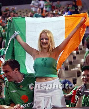 圖:德國VS愛爾蘭 性感女球迷高舉愛爾蘭國旗助威 2002年06月05日 19:37 ![]()