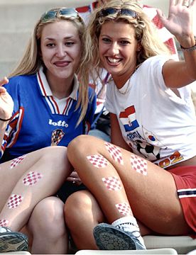 圖:意大利VS克羅地亞 性感女球迷場上助陣 2002年06月08日 17:04 ![]() 意大利VS克羅地亞性感女球迷場上助陣。共同社圖