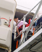 圖文:劉海若在SOS幫助下抵京 順利入住宣武醫(yī)院 2002年06月08日 18:58 ![]() 升降臺(tái)上的擔(dān)架把劉海若從機(jī)艙內(nèi)接出 中新網(wǎng)香港6月8日消息:在倫敦火車(chē)出軌事故中受傷昏迷的鳳凰衛(wèi)視女主播劉海若,在國(guó)際SOS救援中心的幫助下經(jīng)過(guò)長(zhǎng)途飛行,于今天下午抵達(dá)北京,順利入住北京市宣武醫(yī)院接受繼續(xù)治療。 根據(jù)鳳凰衛(wèi)視的消息,依然昏迷不醒的劉海若在姐姐、姐夫和SOS醫(yī)護(hù)人員的陪同下,乘坐中國(guó)國(guó)航波音747飛機(jī)于北京時(shí)間2點(diǎn)25分左右抵達(dá)北京首都機(jī)場(chǎng),2點(diǎn)45分被醫(yī)護(hù)人員用擔(dān)架抬出機(jī)艙,隨后即由救護(hù)車(chē)直接送往北京宣武醫(yī)院。 擔(dān)架上的劉海若還掛著點(diǎn)滴,她的全身被藍(lán)色毛毯緊緊裹住,頭部和胸部也被一個(gè)北京醫(yī)護(hù)方面事先準(zhǔn)備好的粉紅色大紗罩罩住。由于北京市宣武醫(yī)院準(zhǔn)備充分,劉海若的擔(dān)架一被抬下救護(hù)車(chē)就立即被送往住院部4層的神經(jīng)外科病房。 鳳凰衛(wèi)視董事局主席、行政總裁劉長(zhǎng)樂(lè)和在北京工作的鳳凰同仁今天很早就趕到了機(jī)場(chǎng)等候劉海若的飛機(jī),并一路陪同劉海若抵達(dá)宣武醫(yī)院。 北京宣武醫(yī)院治療腦神經(jīng)有豐富的經(jīng)驗(yàn),該院的專家凌鋒醫(yī)生曾于5月份專程前往倫敦探診劉海若,熟悉劉海若的傷勢(shì)病情,劉海若轉(zhuǎn)往該醫(yī)院繼續(xù)治療可以保持治療的連貫性。 相關(guān)報(bào)道:劉海若乘國(guó)航班機(jī)抵京 到宣武醫(yī)院接受進(jìn)一步治療 相關(guān)報(bào)道:劉海若將于明天下午飛抵北京 宣武醫(yī)院準(zhǔn)備就緒 相關(guān)報(bào)道:劉海若仍昏迷不醒 家屬?zèng)Q定7日啟程赴北京治療 相關(guān)報(bào)道:家人證實(shí)劉海若將送京治療 凌鋒醫(yī)生將再赴倫敦