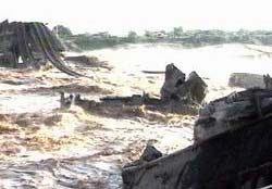 圖文:因洪水而中斷的隴海鐵路今晨恢復通車 2002年06月10日 14:06 ![]() 因洪水中斷的西安市隴海鐵路灞河大橋恢復通車 中新社西安六月十日電(張珂冽瑋)因山洪暴發(fā)而被沖垮的陜西省西安市隴海鐵路灞河大橋,已于今日凌晨零點五十五分恢復通車。有關人士稱,昨日滯留西安的近萬名旅客現(xiàn)已基本疏散。截至今天中午,已通過的雙向對開客車達到十五列。 據了解,灞河大橋位于隴海鐵路西安站以東,始建于一九三四年,因橋齡較長,橋基飽經風蝕雨刷。九日凌晨至下午的一場大暴雨之后,灞河洪水流量達到每秒六百立方米。四個橋墩被沖掉,五孔橋被沖垮,造成一百零五米長的一段鐵路橋完全垮塌斷裂,繁忙的隴海鐵路上下行一度中斷達八個多小時,幸無人員傷亡。 記者今天在現(xiàn)場采訪時看到,昔日干涸的灞河洶涌澎湃,渾黃的激流拍打著河岸,在河床上形成了落差不等的瀑布,氣勢壯觀。河岸上站滿了搶險人員,大型挖掘機、推土機等搶險設備源源不斷地開赴現(xiàn)場。大批警察疏導交通,維持秩序,協(xié)助搶險。 一位老大爺心有余悸地告訴記者,昨天下午三點半,一列開往安康的火車剛剛從距隴海線灞橋鐵路橋東側的西康鐵路橋開過,一聲巨響,灞橋鐵路橋第四號橋墩轟然倒塌了。 據西鐵分局副局長杜振才介紹,為了盡快恢復隴海線的通車,當地鐵路部門臨時修建一條便線與隴海線毗鄰的西康鐵路新橋相連。今日零點五十五分,第一列旅客列車K一七三(青島至蘭州)順利通過灞河大橋。 杜振才副局長表示,目前仍在繼續(xù)加固西康線新橋,每小時通過火車數為三列,有部分列車臨時改行其它線路,昨晚繞行列車數為十一列。 據透露,中國鐵道部對此十分重視,一再敦促盡快落實灞河大橋修復方案。現(xiàn)投入的搶險人力達一千五百人左右,估計修復工作需耗時兩至三個月左右。(完) 中新網北京6月10日消息:6月9日下午,流經西安市東郊的灞河水流猛漲,將隴海線西安灞橋段鐵路大橋沖垮,致使交通大動脈隴海鐵路線中斷。據中央電視臺報道,今天早上6時20分開始,隴海線受阻列車從坍塌鐵路大橋旁的西康鐵路橋通過,隴海鐵路已經臨時恢復通車。 據報道,工程部門計劃近期在坍塌鐵路橋處搭一座軍便橋,并計劃重新設計修建坍塌的鐵路橋。 6月9日下午,灞河水波濤洶涌,出現(xiàn)近20年來最大洪水。15時30分左右,隴海線西安至臨潼間的368米長的灞橋鐵路橋第4號橋墩轟然倒塌,鐵路線攔腰垮塌陷入激流。至17時,隴海鐵路橋第5號、2號和1號橋墩相繼發(fā)生塌陷,造成約150米鐵路橋完全垮塌斷裂。 灞橋鐵路大橋被沖斷后,致使300多次列車滯留,隴海鐵路陷入癱瘓,滯留西安的旅客接近1萬人。 相關報道:隴海鐵路灞河大橋因洪水而中斷 客貨運輸受阻
