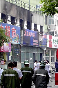 北京一網(wǎng)吧今晨發(fā)生火災造成24死13人受傷(圖) 2002年06月16日 09:10 ![]() 目前起火原因正在調(diào)查之中。新華社記者 唐召明攝 中新網(wǎng)北京6月16日消息:據(jù)新華網(wǎng)報道,今天凌晨2時40分左右,北京海淀區(qū)學院路20號院內(nèi)的一家藍極速網(wǎng)吧發(fā)生火災。經(jīng)公安消防部門現(xiàn)場勘察,火災造成24人死亡,13人受傷。 接報后,北京公安消防部門迅速趕到現(xiàn)場。3時30分,火被撲滅。記者在現(xiàn)場了解到,公安部、北京市領導在現(xiàn)場組織搶救;馂脑蛘谡{(diào)查中。(牛愛民、李煦)