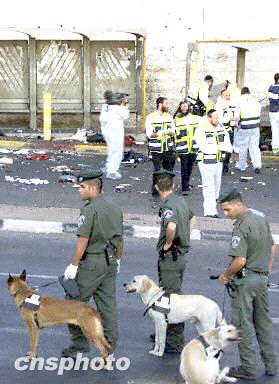 耶路撒冷再次發(fā)生自殺性爆炸事件 至少7死37傷 2002年06月20日 06:52 ![]() 以色列警察和搜索炸彈的專家在耶路撒冷法蘭西山附近。 中新網(wǎng)北京6月20日消息:耶路撒冷19日晚上發(fā)生一起自殺性爆炸事件,至少造成7人死亡,37人受傷。這是耶路撒冷市區(qū)在不到48小時內(nèi)發(fā)生的第二起自殺性爆炸事件。 爆炸發(fā)生在東耶路撒冷的法蘭西山附近的一個交叉路口。據(jù)耶路撒冷警察局局長列維說,兩名以色列邊防警察在此路口發(fā)現(xiàn)一名神色可疑的人,在警察準(zhǔn)備上前盤查時此人引爆了綁在身上的炸彈。 據(jù)國際在線報(bào)道,巴勒斯坦主流派別法塔赫下屬的“阿克薩烈士旅”已宣稱對此次爆炸事件負(fù)責(zé)。 耶路撒冷18日曾發(fā)生一起自殺性爆炸事件,共有19名以色列人喪身,50多人受傷。(陳莊)