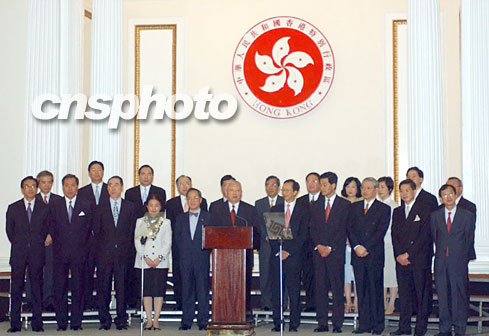 圖文綜述:香港特區(qū)政府問(wèn)責(zé)制高官閃亮出場(chǎng) 2002年06月24日 14:45 ![]() 香港特首董建華6月24日在香港禮賓府宣布二十一名“新內(nèi)閣”成員名單后,與將肩負(fù)重任的高官拍攝全家福。中新社傳真任晨鳴攝 中新社香港六月二十四日電(記者董會(huì)峰張淑琴)備受輿論關(guān)注的問(wèn)責(zé)制高官名單今天公布,香港特區(qū)行政長(zhǎng)官董建華形容這標(biāo)志著特區(qū)施政進(jìn)入新階段。 經(jīng)董建華提名、中央政府任命的十四位問(wèn)責(zé)高官是:政務(wù)司司長(zhǎng)曾蔭權(quán),財(cái)政司司長(zhǎng)梁錦松,律政司司長(zhǎng)梁愛詩(shī);工商及科技局局長(zhǎng)唐英年,房屋及規(guī)劃地政局局長(zhǎng)孫明揚(yáng),教育統(tǒng)籌局局長(zhǎng)李國(guó)章,衛(wèi)生福利及食物局局長(zhǎng)楊永強(qiáng),公務(wù)員事務(wù)局局長(zhǎng)王永平,民政事務(wù)局局長(zhǎng)何志平,保安局局長(zhǎng)葉劉淑儀,經(jīng)濟(jì)發(fā)展及勞工局局長(zhǎng)葉澍堃,環(huán)境運(yùn)輸及工務(wù)局局長(zhǎng)廖秀冬,財(cái)經(jīng)事務(wù)及庫(kù)務(wù)局局長(zhǎng)馬時(shí)亨,政制事務(wù)局局長(zhǎng)林瑞麟。 同現(xiàn)在相比,三位司長(zhǎng)人選未變;港府現(xiàn)有十六個(gè)決策局改組為十一個(gè)局,其中六位局長(zhǎng)來(lái)自公務(wù)員系統(tǒng),五位局長(zhǎng)屬“空降”,來(lái)自商界、專業(yè)界和學(xué)術(shù)界,他們分別是唐英年、李國(guó)章、何志平、廖秀冬和馬時(shí)亨。 為配合“七一”推行問(wèn)責(zé)制,林煥光、劉兆佳將分別出任特首辦主任、中央政策組首席顧問(wèn)。 董建華還公布了行政會(huì)議成員名單。問(wèn)責(zé)制下的行政會(huì)議成員,由現(xiàn)在的十二人增加到十九人。除上述十四位問(wèn)責(zé)高官外,五位非官方議員是:梁振英、田北俊、曾鈺成、鄭耀棠、廖長(zhǎng)城。 在今日于禮賓府舉行的記者會(huì)上,董建華同十四位問(wèn)責(zé)高官、五名行政會(huì)議非官方成員等大“亮相”。董建華在用粵語(yǔ)、英語(yǔ)致辭時(shí)表示,新任命的公布,標(biāo)志著主要官員問(wèn)責(zé)制的建立,標(biāo)志著香港特別行政區(qū)的施政進(jìn)入了新的階段。 董建華說(shuō):“未來(lái)五年里,我們會(huì)是一個(gè)勇于向市民負(fù)責(zé)的政府,是一個(gè)更開明、開放和進(jìn)取的政府,是一個(gè)更掌握和重視民情、民意的政府,也是一個(gè)對(duì)香港有高度承擔(dān)、決心與社會(huì)各方面通力合作的政府! 他指出,新的班子來(lái)自社會(huì)各界,反映特區(qū)政府決心廣泛招納英才,確保在每一個(gè)政策范疇都有社會(huì)上最有能力的人帶領(lǐng),達(dá)到凝聚社會(huì)各方面的力量、融合社會(huì)各方面利益的目標(biāo)。“新的班子,清楚表明了我實(shí)踐對(duì)香港承諾的決心,展示我推行新的、有利于香港發(fā)展的施政路向的抱負(fù)。” 董建華還特別強(qiáng)調(diào),公務(wù)員隊(duì)伍是特區(qū)管治的基石,也是香港在全球化競(jìng)爭(zhēng)中的制勝因素。他會(huì)確保公務(wù)員體制的完整和公務(wù)員隊(duì)伍的穩(wěn)定得以維系,并要在此基礎(chǔ)上進(jìn)一步強(qiáng)化。 今日,董建華還公布了另外五位主要官員名單,他們負(fù)責(zé)領(lǐng)導(dǎo)紀(jì)律部隊(duì)、廉政公署和審計(jì)署。并宣布了十三位常任秘書長(zhǎng)的調(diào)派,他們將協(xié)助問(wèn)責(zé)局長(zhǎng)開展日常工作。