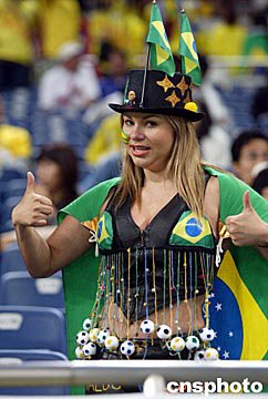 圖:巴西女球迷 2002年06月27日 16:49 ![]() 世界杯足球賽半決賽巴西隊(duì)對土耳其隊(duì)的比賽二十六日晚在日本琦玉縣世界杯體育場舉行,巴西隊(duì)以一比零取勝而進(jìn)入決賽。圖為現(xiàn)場助威的巴西球迷。作者:毛建軍