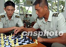 圖:解放軍駐港陸軍生活豐富多彩 2002年06月28日 20:31 ![]() 駐守香港新界的中國人民解放軍陸軍部隊除了軍事技術(shù)高超外,不少官兵還是國際象棋高手。任晨鳴 攝