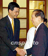 圖:慶祝晚宴上錢其琛與梁振英握手 2002年06月30日 22:14 ![]() 六月三十日,國務(wù)院副總理錢其琛在香港出席特區(qū)政府成立五周年慶祝晚宴時與行政會議召集人梁振英握手。潘索菲 攝