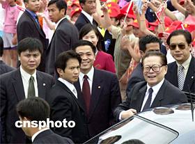 組圖:江澤民乘專機離開香港 2002年07月01日 15:18 ![]() ![]() 國家主席江澤民7月1日結束在香港出席特區(qū)政府成立五周年慶;顒雍,乘專機離開香港。中新社傳真 洪少葵 攝