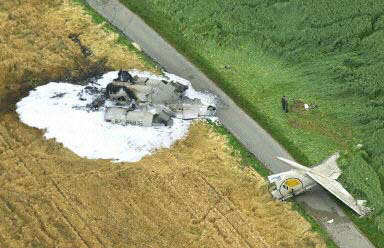圖文:俯瞰飛機殘骸 墜機現(xiàn)場慘不忍睹 2002年07月02日 19:58 德國當(dāng)?shù)貢r間7月1日夜(北京時間2日晨),一架DHL公司的波音757貨機和俄羅斯巴什基爾航空公司的圖-154客機在德國巴登-符騰堡州于伯林根鎮(zhèn)上空相撞并墜毀,至少已造成71人死亡,其中包括52名兒童。圖為俯瞰散落在地上的飛機殘骸。(春風(fēng))