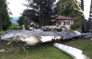 圖文:墜落在房屋附近的圖-154客機(jī)殘骸 2002年07月03日 14:38 德國當(dāng)?shù)貢r(shí)間7月1日夜(北京時(shí)間2日晨),一架DHL公司的波音757貨機(jī)和俄羅斯巴什基爾航空公司的圖-154客機(jī)在德國巴登-符騰堡州于伯林根鎮(zhèn)上空相撞并墜毀,至少已造成71人死亡,其中包括52名兒童。圖為墜落在一所房屋附近的圖-154客機(jī)殘骸。(春風(fēng))