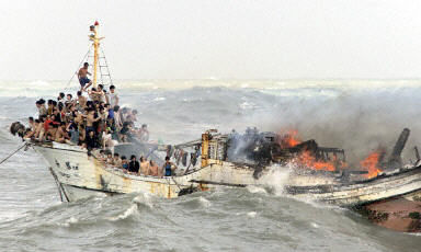 大陸漁工船失火:133人獲救 2人重傷 1人失蹤 2002年07月09日 17:45 ![]() 搭載百余名祖國大陸漁工的臺灣籍海上船屋“元勝”二號今天上午在高雄外海失火。(法新圖) 中新網(wǎng)香港7月9日消息:臺北訊,作為祖國大陸漁工“海上旅館”用的臺灣屏東籍“元勝二號”漁工船,今天在高雄海域發(fā)生火災(zāi)。據(jù)臺灣媒體最新消息,事故中目前共計救起133名大陸漁工,其中11人受傷送醫(yī),另有一人失蹤。 據(jù)“中央社”報道,“元勝二號”漁工船今天上午在高雄大林蒲外海發(fā)生火警,造成祖國大陸漁工兩人重傷、九人輕傷送醫(yī)。 受傷的11名大陸漁工中,有10人被送往高雄市的小港醫(yī)院急救。其各自的傷勢情況如下—— 蕭輝,25歲,右手挫傷;陳如君,27歲,左手撕裂傷及頸部扭傷;陳良紅,28歲,頭部及右臉頰外傷;沈繼兵,32歲,頭部外傷及背部多處挫傷;顧海兵,23歲,右手臂擦傷及左小腿挫傷;張永,27歲,頭部外傷、多處撕裂傷、左手臂及右手肘挫傷;唐宗林,20歲,嗆傷及顏面灼傷;劉國保,29歲,嗆傷及胸部挫傷;師福君,21歲,嗆傷;李建國,26歲,臉部燒燙傷合并嗆傷。 這10名受傷漁工中,除師福君及李建國重傷外,其余都屬輕傷。其中師福君因在被救過程中落海,吸入大量海水,造成肺部吸入性嗆傷,經(jīng)急救后,傷勢穩(wěn)定,仍住院觀察;而李建國傷勢最為嚴重,但暫時亦無生命危險。 另一名祖國大陸漁工任忠均,22歲,身上多處擦傷,經(jīng)急救已無大礙。 此外,一名失蹤者的身份目前待查。 原停泊在高雄與屏東間外海的“元勝”二號海上船屋,今天上午約8:30時在高雄南星計劃填海造陸區(qū)外海一浬處突然起火。由于風(fēng)浪太大,救援船只無法靠近。臺灣方面遂派出直升機,以鋼纜吊掛、接駁方式,將船屋上的大陸漁工救至岸上。據(jù)悉,救援行動歷經(jīng)近5個小時。 “元勝”號是臺灣屏東縣籍的祖國大陸漁工海上船屋,停泊高雄與屏東間外海,因臺灣方面不允許祖國大陸漁工上岸,該船屋被專門用于出海作業(yè)漁船雇用的大陸漁工居住。 相關(guān)報道:"突然巨浪打來…"大陸獲救漁工回憶海上大火驚魂 相關(guān)報道:臺灣對祖國大陸出口趨增 上半年同比增長逾七成 相關(guān)報道:大陸漁工船起火132人獲救 落水失蹤人數(shù)說法不一 相關(guān)報道:圖文:大陸漁工船屋被燒毀 128名漁工全部獲救 相關(guān)報道:七位大陸漁工在高雄急救 有人跳海 船屋沉沒一半 相關(guān)報道:臺灣船屋失火 救起60余大陸漁工 尚有30多待救 相關(guān)報道:搭載大陸漁工的船只在臺灣海峽失火 100多人待救 相關(guān)報道:一艘載有100多人的大陸漁船在臺灣海峽著火