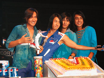 吳建豪過(guò)生日 F4和歌迷一起開(kāi)心祝“大”壽(圖) 2002年08月08日 09:42 ![]() F4成員為吳建豪(左二)賀生辰 中新網(wǎng)香港8月8日消息:F4前日旋風(fēng)襲港出席百事的首播會(huì),其后只有吳建豪多留港一天,除了跟歌迷共慶生日外,還為新歌《聽(tīng)身體唱歌》招募MV女主角,另三位成員已先行返臺(tái)灣。 據(jù)此間文匯報(bào)報(bào)道說(shuō),前晚的首播會(huì)上,吳建豪和言承旭突然走下臺(tái)與歌迷握手,引起現(xiàn)場(chǎng)一度混亂,受到歌迷的熱情感染,言承旭和朱孝天來(lái)了兩下“胸頂胸”,教歌迷看得怦然心動(dòng)。吳建豪和仔仔周渝民差點(diǎn)被歌迷的熱情感動(dòng)得掉下淚來(lái),一些歌迷更送上生日禮物給壽星仔吳建豪。 活動(dòng)完畢后,他們便拉隊(duì)到郭富城的餐聽(tīng)為建豪慶祝生日,城城雖沒(méi)有出現(xiàn),也送來(lái)蛋糕和鮮花。 壽星仔吳建豪昨午繼續(xù)同二百位歌迷慶祝,期間他以廣東話向在場(chǎng)歌迷說(shuō):“我愛(ài)你,多謝!彼趾芰粜目窗宋缓蜻x的女主角,他對(duì)各人的表現(xiàn)都很滿意。有位參賽者更表演一字馬,惜未能為她取得更高分。 吳建豪切生日蛋糕時(shí),突然興奮得拿著切蛋糕的刀轉(zhuǎn)圈,似是在耍雜技,切過(guò)蛋糕后,他迅速舔一舔刀上的蛋糕。其后,他表示因在小時(shí)候沒(méi)有太多朋友,便經(jīng)常拿刀當(dāng)玩具般玩。 問(wèn)到剛挑選出來(lái)的MV女主角,到時(shí)建豪和她可有親熱鏡頭,建豪磨拳擦掌說(shuō):“不知道,要看導(dǎo)演的安排,相信歌迷知道我是工作,不會(huì)生氣!