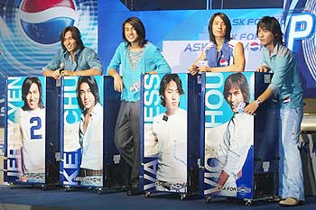 拍《流星花園》日久生情? F4言承旭傳鬧姐弟戀(圖) 2002年08月09日 09:21 ![]() F4言承旭(左1)被傳媒追問(wèn)他與柴姐的緋聞,他拒絕回應(yīng)! 中新網(wǎng)香港8月8日消息:言承旭與《流星花園》監(jiān)制柴智屏鬧姐弟戀?言承旭被問(wèn)起臉色一沉! 據(jù)此間新明日?qǐng)?bào)的報(bào)道說(shuō),F(xiàn)4言承旭憑“道明寺”一角走紅東南亞,傳媒與歌迷對(duì)於他的感情生活非常有興趣,有傳言指他喜歡同性,也有傳他與《流星花園》制作人兼經(jīng)理人柴智屏正在鬧“姐弟戀”! 前晚他在香港出席百事的廣告首播記者會(huì)后,傳媒追問(wèn)他與柴姐的緋聞,言承旭假裝聽(tīng)不懂拒絕回應(yīng)! 他身旁的朱孝天則搞笑為他解圍,引來(lái)哄堂大笑!雖然F4都略懂廣東話,但記者訪問(wèn)時(shí)多以華語(yǔ)發(fā)問(wèn),朱孝天就充當(dāng)翻譯員。當(dāng)記者問(wèn)到言承旭與柴智屏的戀情時(shí),他面色一沉,朱孝天也不肯翻譯,只是拍了一下他的膝蓋說(shuō):“我想,是時(shí)候我們公開(kāi)了!” 言承旭不禁失笑又假裝聽(tīng)不明白,并轉(zhuǎn)身向工作人員示意要求解圍,最后工作人員表示與廣告宣傳無(wú)關(guān),拒絕回應(yīng)。