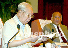 ![]() 黃埔軍校同學(xué)會(huì)在京理事九日舉行座談會(huì),譴責(zé)陳水扁的“臺(tái)獨(dú)”言論。圖為黃埔軍校同學(xué)會(huì)宣傳委員、周恩來總理的侄女周秉德在會(huì)上發(fā)言。毛建軍 攝