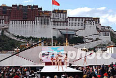 ![]() 十三日晚,姍拉娜2002世界精英模特大賽中國(guó)選拔賽在拉薩古老的布達(dá)拉宮廣場(chǎng)進(jìn)行決賽,身穿泳裝的模特選手在布達(dá)拉宮前一展風(fēng)采。
