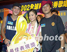 ![]() 歌星陳奕迅、陳冠希8月15日在香港出席「2002全球華人新秀歌唱大賽(香港區(qū)選拔賽)」記者會(huì),陳奕迅會(huì)上模仿陳冠希的臺(tái)風(fēng),頗為古怪有趣。鄧慶樂(lè) 攝