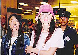 反之,頭戴粉紅帽,身穿粉紅T恤,襯于一條藍(lán)色牛仔褲的舒淇,神清氣爽地乘搭CX735抵新時(shí),或許因未有影迷會(huì)造勢(shì),影迷零零星星,未見熱鬧,有三兩影迷見舒大美女,喜悅地呼喚伊人的芳名,舒淇應(yīng)聲望去,只是含蓄地笑笑。