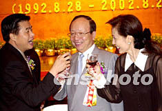 廣州臺(tái)資企業(yè)協(xié)會(huì)成立十周年慶典大會(huì)二十八日晚在廣州花園酒店舉行,“中國(guó)臺(tái)商發(fā)展促進(jìn)協(xié)會(huì)”理事長(zhǎng)章孝嚴(yán)先生〔中〕也參加了此次盛會(huì)。作者:羅仰明
