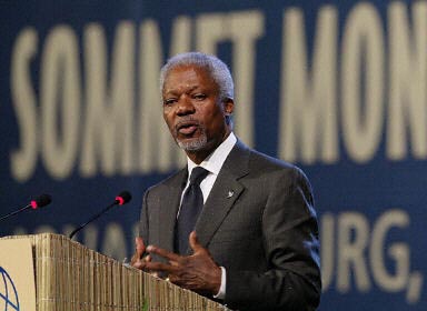 姆貝基、安南、第五十六屆聯(lián)大主席韓升洙先后在開(kāi)幕式上致辭。安南在講話中呼吁,國(guó)際社會(huì)特別是發(fā)達(dá)國(guó)家應(yīng)該為地球、為未來(lái)負(fù)起責(zé)任。他說(shuō),本次會(huì)議的重點(diǎn)集中在人類與自然資源的關(guān)系上。目前,氣候變化、污染、漁業(yè)資源的損耗等環(huán)境問(wèn)題已經(jīng)讓人無(wú)法視而不見(jiàn)。