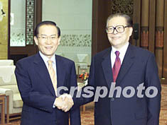 中新社北京九月三日電 (記者 朱大強(qiáng))中共中央總書記、國(guó)家主席江澤民今天在人民大會(huì)堂會(huì)見了來訪的韓國(guó)大國(guó)家黨名譽(yù)總裁李會(huì)昌一行。