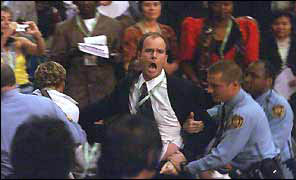 英國廣播公司的消息說,鮑威爾批評津巴布韋和提到美國如何應付環(huán)境變化的時候,遭與會者嘲笑。多次噓聲和“布什可恥”的口號聲使他不得不中斷了當天的發(fā)言。