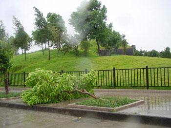 盡管離“森拉克”登陸還有2、3個小時左右,但臺風(fēng)的影響已給溫州造成部分破壞。(董晶亮)