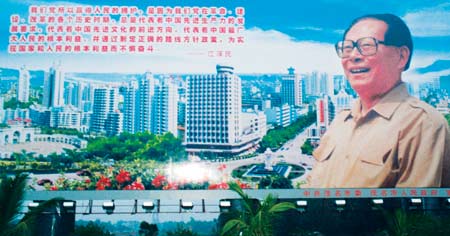 中新網(wǎng)廣州9月7日消息:一幅以宣傳“三個代表”重要思想,茂名人民邁向新世紀為主題的巨型宣傳畫《江總書記在茂名》近日矗立在廣東茂名市油城十路與高(州)水(東)公路交界處。