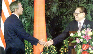 4月27日,中國國家副主席胡錦濤的美國之行,被輿論認(rèn)為是中國在9·11之后積極出擊,主動(dòng)尋求新策的一種舉動(dòng)。這也是一年來,中美關(guān)系的一個(gè)高潮。