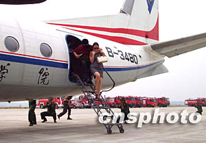 中新社綿陽九月十二日電(陳雯、于力)今天下午,四川綿陽市南郊機(jī)場舉行了自通航以來規(guī)模最大的一次反劫機(jī)應(yīng)急救援演練。當(dāng)?shù)毓簿止渤鰟咏瘑T、近百輛警車和特種車輛,集結(jié)了全部警種,針對航空器被劫持、涉爆及發(fā)生火災(zāi)的情況進(jìn)行了全過程、全方位的戰(zhàn)斗部署和救援演練。