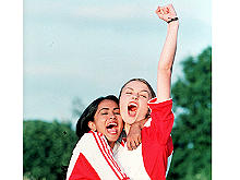 中新網(wǎng)9月19日電 《我愛貝克漢姆》女主角帕敏德初登大銀幕,為了扮演好這個(gè)對貝克漢姆有狂熱崇拜的角色,她憑著“JUST DO IT”的精神,苦練足球基本功,令導(dǎo)演不禁懷疑帕敏德私下究竟花了多少時(shí)間偷練?有場讓帕敏德表演踢自由球的戲碼居然一次就O.K,令劇組人員目瞪口呆!