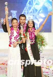 來自中國臺灣的黃志瑋表現(xiàn)不俗,首度來內(nèi)地參賽就捧回男子桂冠。女子冠軍由上海姑娘杜鵑(左)奪得。賽前奪冠呼聲甚高的海南姑娘吳英娜(右)奪得中國三亞形象小姐獎,有資格代表中國參加今年十一月在尼日利亞舉辦的第五十二屆世界小姐大賽。
