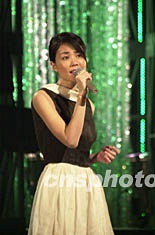 圖為香港著名歌手王菲在晚會上演唱《但愿人長久》。