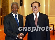 這是安南第五次訪華,他在會見中感謝中國對聯(lián)合國工作的支持。
