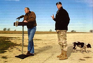 通常,為了接待來訪的外國領(lǐng)導(dǎo)人,布什和夫人勞拉會攜帶兩條白宮第一犬——蘇格蘭獵犬巴尼和小哈巴狗斑點,提前一天返回牧場,以表達(dá)盡地主之宜的禮節(jié)。