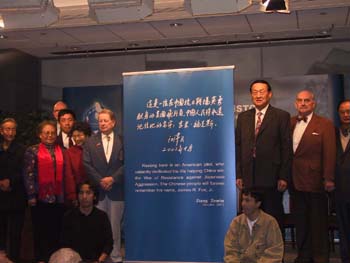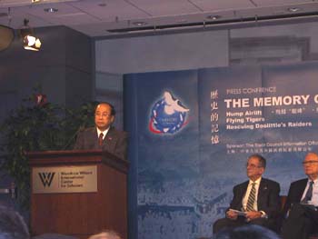 這是今天在此間開(kāi)幕的大型展覽“歷史的記憶”的重要活動(dòng)之一。在中美聯(lián)合公報(bào)發(fā)表三十周年,江澤民主席即將訪美之際,中國(guó)國(guó)務(wù)院新聞辦在此間的威爾遜中心舉辦“歷史的記憶”展覽,該展覽分為“駝峰航線”、“陳納德和美國(guó)志愿航空隊(duì)”、“營(yíng)救杜利特爾轟炸機(jī)隊(duì)”三部分,講述“二戰(zhàn)”期間中美在反法西斯戰(zhàn)爭(zhēng)中的合作歷史。