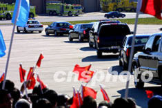 22日,江澤民主席應(yīng)布什總統(tǒng)邀請訪問美國,抵達芝加哥奧黑爾機場,圖為江主席一行乘坐的車隊離開機場駛往市區(qū)。作者:王瑤
