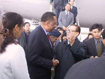 江澤民和夫人王冶坪走下舷梯 中新社記者 呂振亞 攝