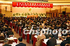 今天上午,與會(huì)的七百五十九名選舉會(huì)議成員舉手表決,通過了主席團(tuán)名單。