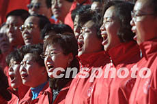 一日,北京市安定門街道的居民高歌《沒有共產(chǎn)黨,就沒有新中國》,喜迎八日即將召開的中共十六次代表大會。作者:史利
