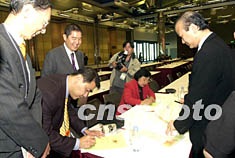 澳門特區(qū)行政長官何厚鏵在進入會場時通過電腦識別身份。