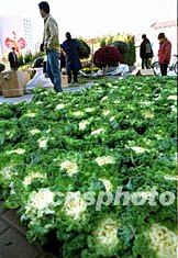 為迎接中共十六大的召開,北京西單廣場(chǎng)十一月布置的花卉雕塑別出新意,部分?jǐn)[設(shè)采用蔬菜為材料,象征綠色生活。作者:俊畫