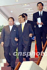 香港政府行政會議11月5日召開會議,討論通過了備受關注的公立醫(yī)院急癥室收費100元建議。圖為會后民政事務局長何志平、財政司司長梁錦松、行政會議成員梁振英等步出會場。 洪少葵 攝