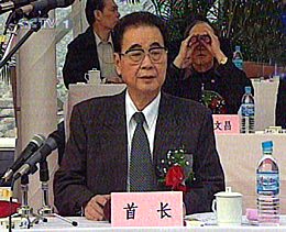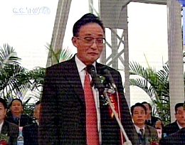 國(guó)務(wù)院副總理吳邦國(guó)宣布導(dǎo)流明渠截流合龍成功后,全國(guó)人大委員長(zhǎng)李鵬發(fā)表了重要講話。