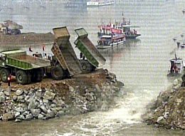 中新網(wǎng)11月6日電三峽工程導(dǎo)流明渠截流今天上午合龍成功。此舉為中國(guó)建設(shè)世界上最大的水利工程——三峽工程奠定了良好基礎(chǔ)。