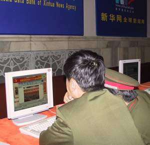 舉世矚目的中共十六大今天上午隆重揭幕,步入北京人民大會(huì)堂的代表們發(fā)現(xiàn),在人民大會(huì)堂東大廳南側(cè),新增了一排專線上網(wǎng)電腦。輕點(diǎn)鼠標(biāo),官方新華社所屬的新華網(wǎng)“中共十六大”實(shí)時(shí)報(bào)道網(wǎng)頁(yè)就出現(xiàn)在人們眼前。