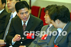 中國共產(chǎn)黨第十六次全國代表大會十日繼續(xù)舉行分組會,江蘇遠(yuǎn)東集團(tuán)董事長蔣錫培在江蘇代表團(tuán)分組會上與代表一起討論十六大報(bào)告。作者:毛建軍
