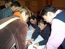 據(jù)新聞中心的一位工作人員介紹,由于新常委與記者們見面的場地面積有限,而此次參加十六大報道工作的中外記者人數(shù)又太多,所以只能通過發(fā)放請柬的方式控制參加見面會的記者人數(shù)。大會新聞中心會根據(jù)每家新聞機構(gòu)規(guī)模的大小,相應(yīng)地發(fā)放一至數(shù)張請柬。(劉志剛)