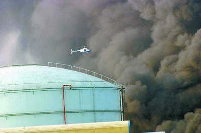 記者從現(xiàn)場的目擊村民那里了解到,番禺番龍油庫主要儲存柴油,庫區(qū)有大小油罐十幾座,他們稱兩艘肇事萬噸油船是在裝油停泊時起火引發(fā)連環(huán)爆炸的。記者在采訪中,看到廣州市消防大隊、番禺區(qū)警方、番禺區(qū)人民醫(yī)院、武警部隊等有關部門全面出動。大批多功能消防車、搶險車呼嘯到達現(xiàn)場,警方警戒線層層設置,空中直升機轟鳴盤旋,監(jiān)視指揮滅火工作。其間,記者目擊到有近十輛救護車鳴笛駛離現(xiàn)場,但具體傷亡情況不明。