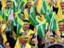 中新網11月18日電 臺灣數百名農漁會代表今日下午前往農訓協會舉行“1123與農共生團結大游行”誓師大會,并以行動表達對當局以改革之名意圖“消滅”農漁會的高度不滿,李登輝則到場呼吁農漁民取消游行,不過全國農漁會自救會強調:“不管怎樣,游行照常舉行!”