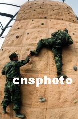 解放軍某野戰(zhàn)通信團,日前組織官兵進行攀巖訓練。該團已將膽識和心理素質訓練作為2002年冬季訓練的重要科目。